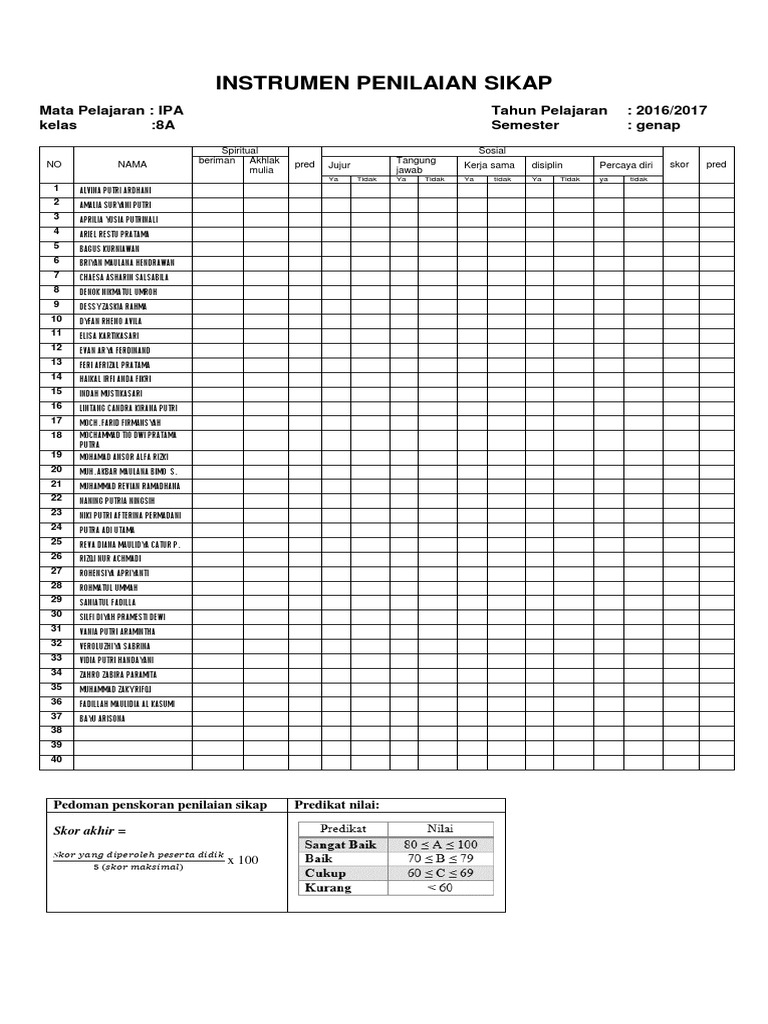 for "Contoh Penilaian Sikap Dengan Jurnal - 48+ Format Penilaian Pengetahuan Dan Keterampilan Peserta Didik Muhamad Yogi PNG"