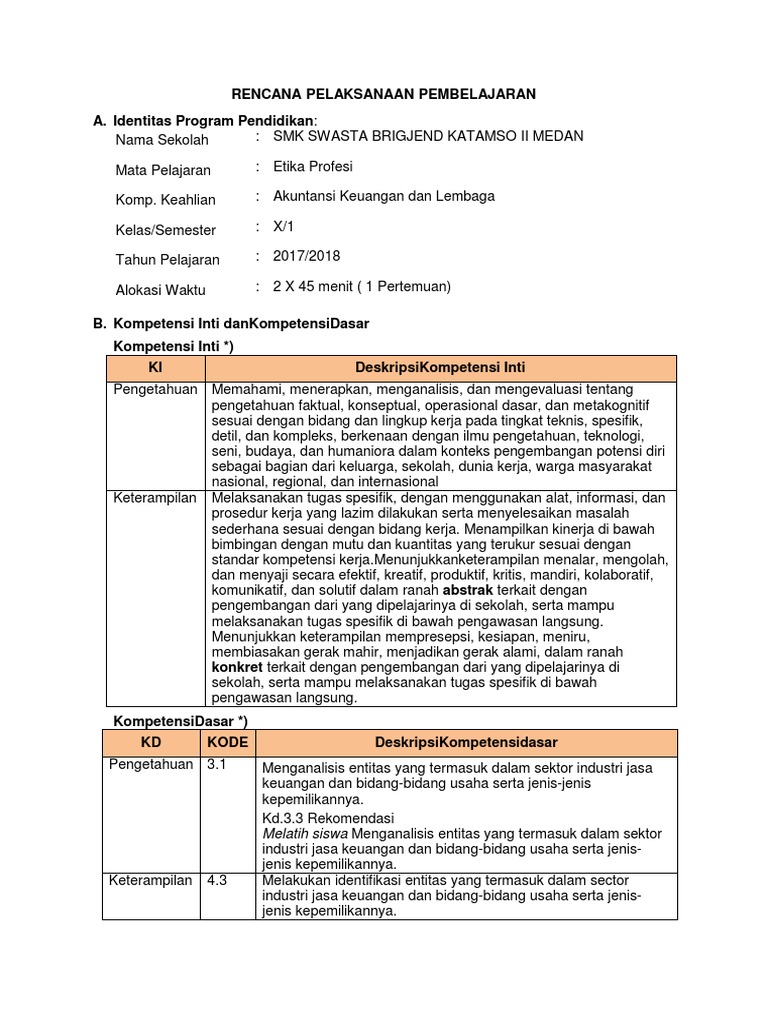 Cd rpp mak revisi terbaru sudah mengikuti anjuran kementerian sesuai dengan permendikbud terbaru dengan format 1 lembar untuk kelas 10 xi dan xii sudah lengkap dengan silabus, rpp, prota, promes, kkm, kikd dan lainnya Oleh sebab itu rpp nya untuk mapel etika profesi juga ada 2 versi yaitu daring dan luring. Bagi anda yang saat ini tengah duduk dibangku x smk dan mengambil jurusan akuntansi dan keuangan lembaga, tentu beragam materi pelajaran sudah didapatkan. Akuntansi keuangan (c3) aspek/materi pokok : Download rpp mata pelajaran teknologi jaringan berbasis luas wan. Download rpp etika profesi smk kelas x kurikulum 2013 revisi 2017 2018 semester ganjil dan genap jurusan akuntansi dan keuangan lembaga. Download gratis contoh referensi rencana pelaksanaan pembelajaran rpp k13 (kurikulum 2013) untuk mata pelajaran etika profesi di sini, berikut adalah cuplikan dari isi rpp: View silabus sambungan rppdocx from span 4014 at the university of sydney. Silabus etika profesi smk revisi kur 2013 pdf. Buku kelas 10 smk etika profesi dan profesional bekerja 1. Silabus smk kurikulum 2013 pdf. Menghayati dan mengamalkan perilaku jujur, disiplin, tanggungjawab, peduli. Download rpp etika profesi smk kurikulum 2013 guru ilmu sosial buku etika profesi kelas 10 smk kurikulum 2013 guru ilmu sosial rpp etika profesi k13 revisi 2017 smk guru ilmu sosial rpp ekonomi sma xii kd 3 3 akt sia smk mak kelas x etika profesi program akuntansi keuangan.
