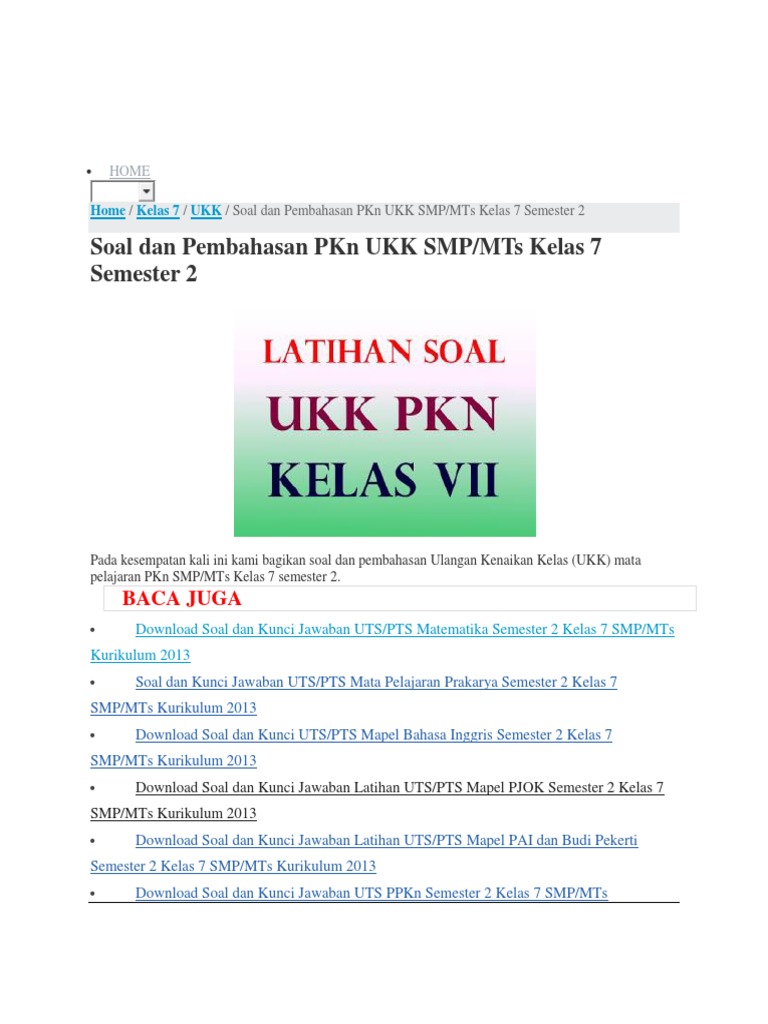 Nah kakak telah menyediakan soal uts tersebut dalam bentuk soal pilihan ganda. Dan jika pada link download ada file rusak atau file tidak dapat di unduh segera beritahu kami lewat kolom komentar di bawah agar segera kami perbaiki. Soal dan kunci jawaban pts ppkn smp kelas 7 semester genap tidak terasa semester genap telah berjalan hampir setengah semester. Untuk menghadapi ulangan semester 1 ataupun. Kunci jawaban tts pintar # 6.